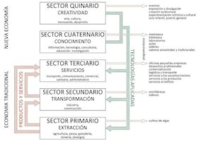 Todos esto se produce en un contexto de paso de un modelo económico a otro, medido en términos de población dedicada a actividades de sectores económicos. Ya se considera que además de los tres sectores, primario o extractivo, secundario o transformativo y terciario de servicios, existen otros dos más: cuaternario del conocimiento y quinario de la creatividad.