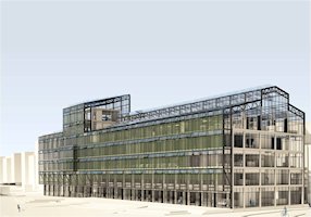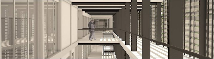 Aprovechando la fuerte exposición a sur se dispone de una cortina de cultivo de microalgas con laboratorios de producción de biomasa que por su disposición contribuyen al comportamiento energético a lo largo de las estacionesd del año, núcleos empresariales de conocimiento apllicado, innovación y tecnología asociados a la conservación y dispersión del conocimiento y traslado a la sociedad.